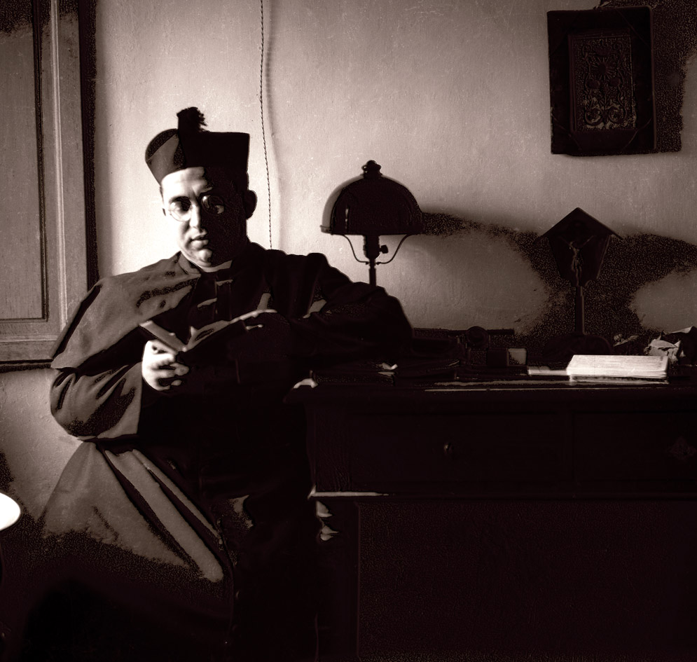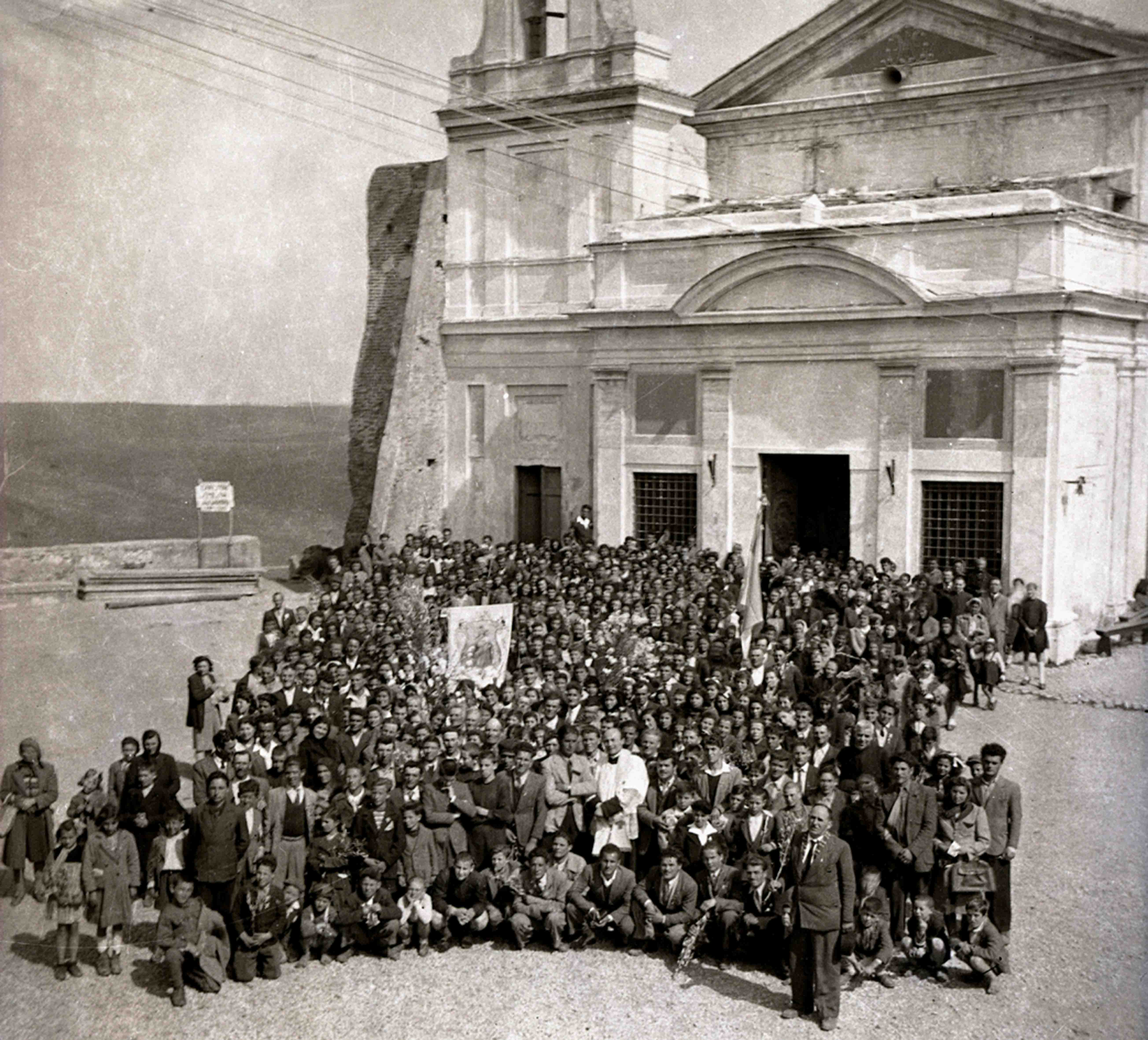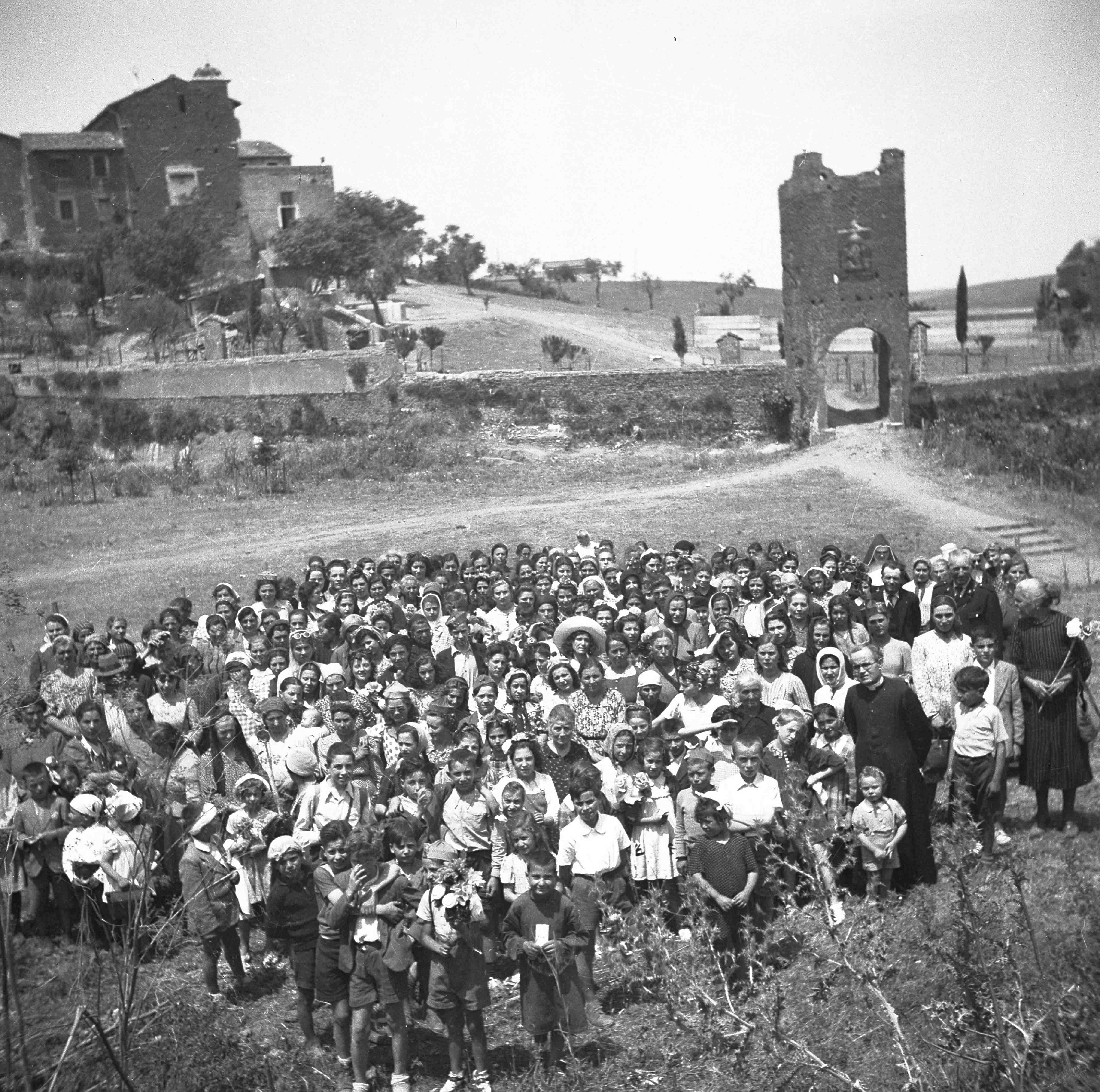 A questo tono di ridicolo, che durò per decenni, si aggiungeva poi il disagio per la presenza di venditori di cibi che si sistemarono stabilmente al Divino Amore: le bancarelle di porchetta, di pecorino, di fave e di vino vennero sistemate proprio a ridosso della chiesetta. Il pellegrinaggio al Santuario di Castel di Leva diventava l’occasione, quando non il sinonimo, di gita «fuori porta». Tale commistione tra sacro e profano, se suscitava qualche imbarazzo nei sacerdoti, non dovette, comunque, impensierire la Madonna, che, anche in quegli anni, continuò ad elargire grazie a quanti l’invocavano con fede. La «primavera» di Don Umberto Terenzi Il deserto è il luogo e il tempo della Provvidenza di Dio. Il deserto, dice la Scrittura, è un «luogo inospitale», dove non c’è «seme, fico, uva, melograno e non c’è acqua da bere» (Nm 20,5). Eppure è in questa terra arsa e bruciata dal sole che il Signore manifesta la sua Provvidenza, mostrandosi ancora più vicino ai figli che ama. «Esultino il deserto e la steppa, gioisca e fiorisca l’arida terra... Vedranno la gloria del Signore, lo splendore del Carmelo e del Saron» (Is 35,1-2). Nel «deserto» cui era ridotto il Santuario del Divino Amore la Provvidenza ha avuto il volto e il cuore di Don Umberto Terenzi. All’infaticabile opera di questo prete romano, del quale è stata introdotta la Causa diocesana di Beatificazione e Canonizzazione il 23 gennaio 2004, è legata, quasi