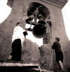 L’eco di quanto era accaduto e, soprattutto, il concorso di pellegrini, furono tanto vasti da spingere ben presto la gerarchia ecclesiastica a volerci vedere chiaro. Il Cardinale Vicario, il carmelitano scalzo Giovanni Antonio Guadagni, si recò in visita a Castel di Leva. Si decise così di trovare subito un tetto alla Madonna. L’immagine fu staccata dall’antica torre e trasportata nella chiesetta di Santa Maria ad Magos, a due chilometri da Castel di Leva, in località Falcognana. La decisione non fu indolore. E non solo perché la scarsa perizia con cui, nel 1742, fu eseguito il distacco dell’affresco dal muro ha portato a danni non più riparabili, e anzi aggravati da incauti e numerosi restauri successivi. Il trasferimento della miracolosa immagine scatenò, infatti, il finimondo tra il Capitolo di San Giovanni in Laterano, alla cui giurisdizione apparteneva la chiesetta di Falcognana, e il Conservatorio di Santa Caterina della Rota ai Funari, proprietario di Castel di Leva e quindi del dipinto. A dirimere il contenzioso dovette intervenire la Sacra Rota: con sentenza definitiva dell’8 marzo 1743 si decise per l’appartenenza dell’immagine al Conservatorio di Santa Caterina, precisando che le offerte dei pellegrini dovevano servire per la costruzione di una chiesa. In breve si pose mano ai lavori, per i quali si incaricò l’architetto campano Filippo Raguzzini. In poco meno di un anno la nuova chiesa, edificata sul luogo del miracolo, era pronta per ospitare l’immagine della Madonna. Il 19 aprile, lunedì di Pasqua 1745, si procedette al trasferimento. Le cronache del tempo annotano una gigantesca folla di romani e di abitanti dei Castelli, con tanto di gonfaloni e di confraternite, che fece da corona al carro che trasportò la prodigiosa effigie dalla chiesetta di Santa Maria ad Magos al Santuario appena eretto. Per l’occasione papa Benedetto XIV concesse ai partecipanti l’indulgenza plenaria, che potevano lucrare anche coloro che avessero visitato l’immagine in uno dei sette giorni seguenti quello del trasferimento. Durante l’Anno Santo del 1750, il 31 maggio, si procedette alla solenne dedicazione della chiesa e dell’altare maggiore al Divino Amore, che è poi il titolo che meglio di ogni altro spiega chi è Maria: una ragazza che accettò di diventare Madre del Salvatore perché ripiena dello Spirito Santo, cioè del Divino Amore. La celebrazione fu presieduta dal Vescovo di Padova, il Cardinale Carlo Rezzonico, che otto anni più tardi salirà al soglio pontificio, con il nome di Clemente XIII. Gli anni della decadenza