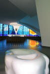 La storia evangelica di quelli che nel cuore del Santuario hanno vissuto in povertà, letizia e zelo, primo fra tutti Don Umberto Terenzi, su quel poggio umile e luminoso, richiama immagini lontane e sempre nuove. Si respira una pace e una letizia da Cantico delle Creature. Un inno che viene dal passato in arie mistiche di fraternità, concedendo una sosta riposante per lo spirito e per il corpo. Per questo ho sognato e continuo a sognare di essere anch’io, come cristiano e come artista, uno che per un felice momento ha dimenticato le cattedrali importanti e solenni, i templi regali, per dare forma e spirito a una grotta, a una “casa di campagna” per Maria e per noi. A questa Madonna, amica gentile e madre generosa, voglio costruire col suo popolo una casa simile a una roccia affiorante da un prato di collina, familiare al verde, agli alberi, all’azzurro del cielo, agli uccelli, all’ondeggiare delle messi e al profumo dei fiori. Questa casa di Maria è la più semplice, la più discreta, la più rispettosa dell’ambiente in cui sboccia». Con tali premesse, era naturale che il progetto incontrasse subito il favore dei committenti: il 19 febbraio 1991 si ebbe la concessione edilizia. I lavori iniziarono con il fervore, il rigore e la tenacia che contraddistinguono le opere di P. Costantino e dell’architetto Leoni sostenuti dall’intraprendenza e dal coraggio del Rettore del Santuario, Don Pasquale Silla, che, conquistato da quell’ardua ed esaltante impresa, vi dedicò tutto se stesso. Con la sua incrollabi1e fiducia nell’aiuto della Vergine, coinvolse nella preghiera e in lodevoli iniziative tutta la comunità del Divino Amore, che, dopo tanta attesa, finalmente vedeva realizzarsi il suo sogno. Nonostante l’opera fosse davvero colossale, tutto procedeva nel migliore dei modi e pian piano si avverava ciò che P. Costantino aveva scritto per illustrare il suo progetto: «Sarà una grande “grotta azzurra”. Infatti, le pareti di cristalli colorati inonderanno di luce il pavimento, che la rimanderà sulle bianche vele della volta. Così, nello “spazio mistico” dell’aula eucaristica, i sacri arredi e i fiori sembreranno perle quasi grondanti dai remi di una fantastica nave... ». Non basta che un Santuario sia famoso, bello, importante. Un Santuario deve abbracciare e benedire tutta la vita dell’uomo; non soltanto i suoi momenti liturgici e sacramentali, ma l’intera realtà umana in ciascuna delle sue dimensioni vitali.